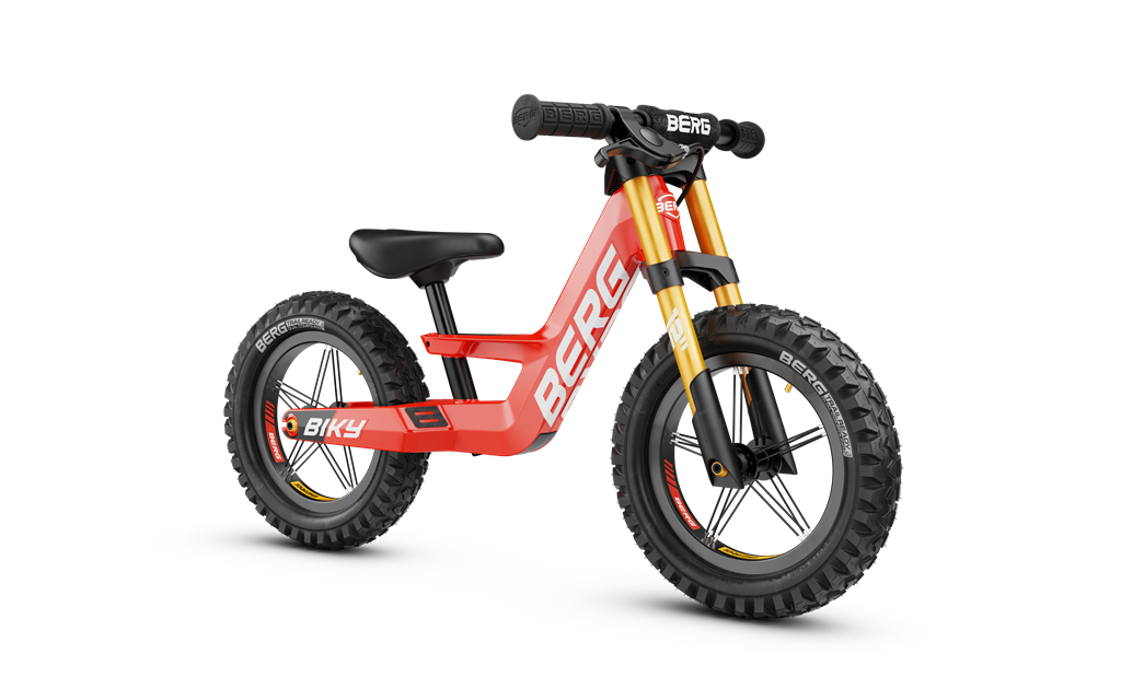 Like the other models in the BERG Biky family, this balance bike has an ultra-lightweight frame, a safe handlebar deflection limiter, an adjustable saddle and comfortable pneumatic tyres. This makes this sturdy white balance bike ready for any adventure. Are you ready too?